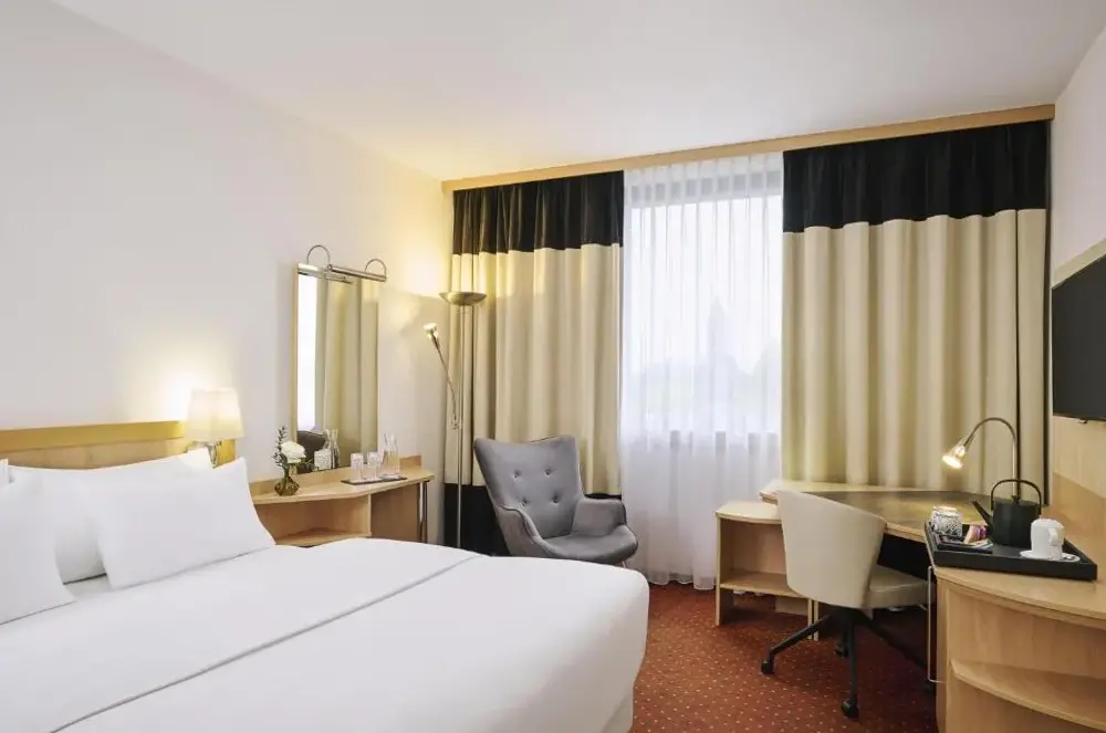 Yes, NH Oberhausen has a 24-hour front desk and offers room service for guest convenience. The hotel also features a lobby bar with a large TV and a Spanish-style restaurant, and it’s about 450 m from Oberhausen Central Station for easy arrival and departures.